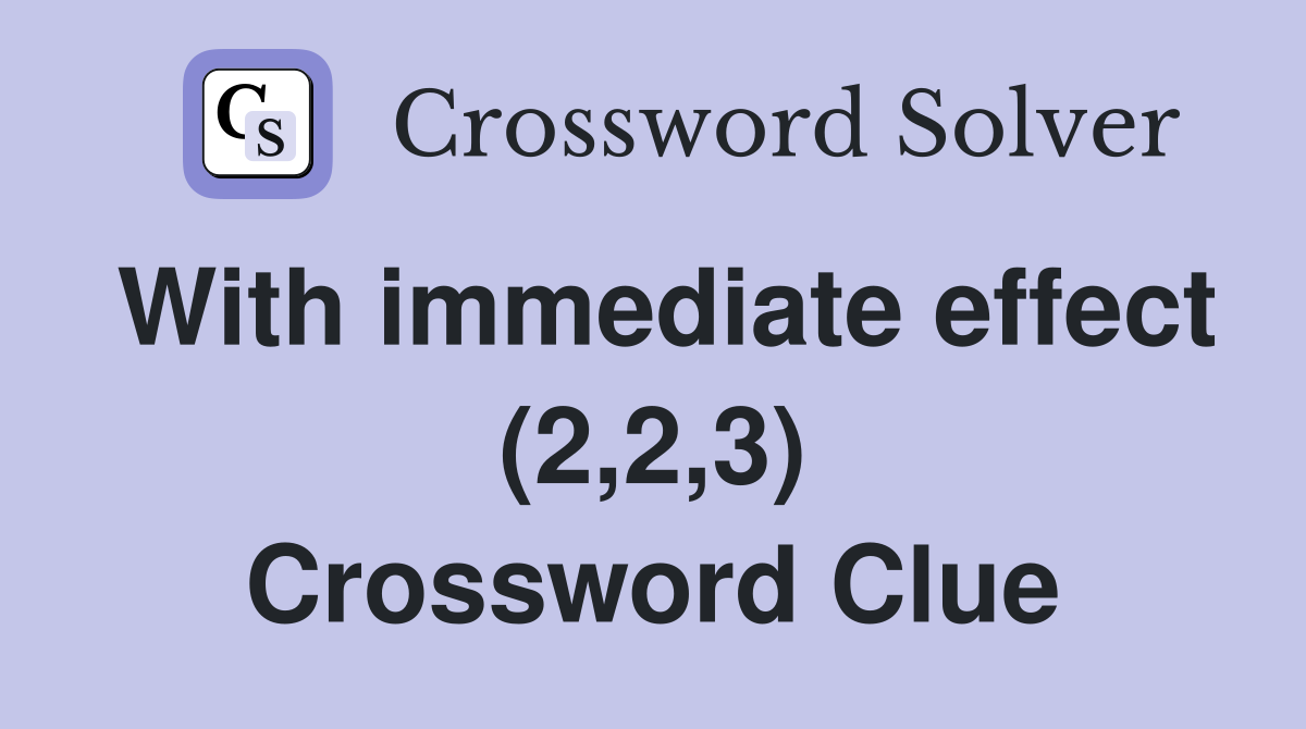 With immediate effect (2 2 3) Crossword Clue Answers Crossword Solver
