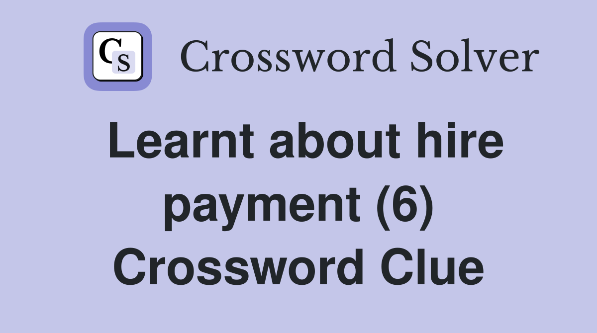 Learnt about hire payment (6) Crossword Clue Answers Crossword Solver