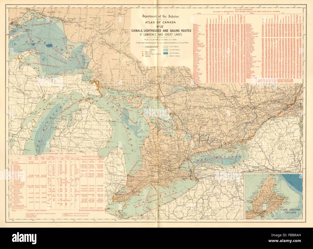 GREAT LAKES ST LAWRENCE Canals lighthouses sailing routes WHITE