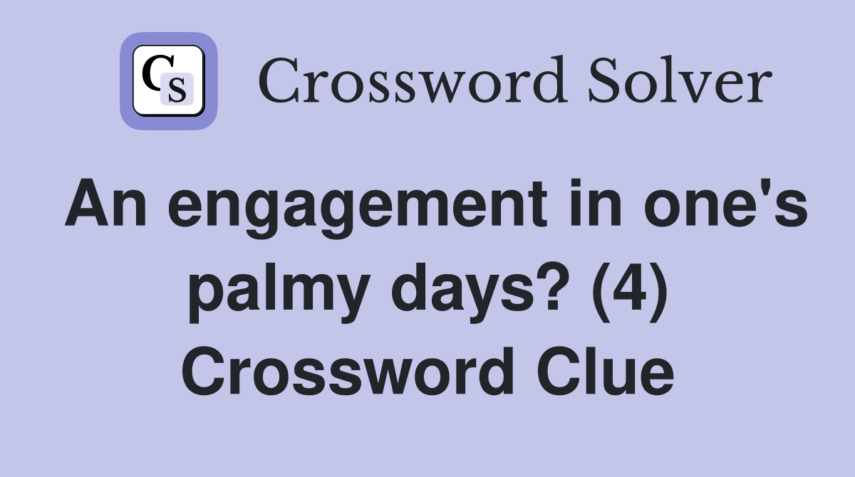 An engagement in one #39 s palmy days? (4) Crossword Clue Answers