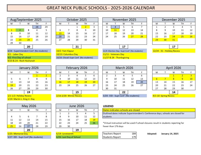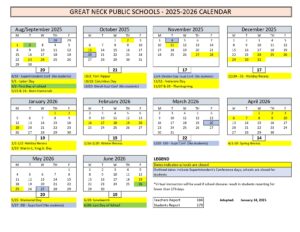 Great Neck Public Schools Calendar 2025 2026 South Schools
