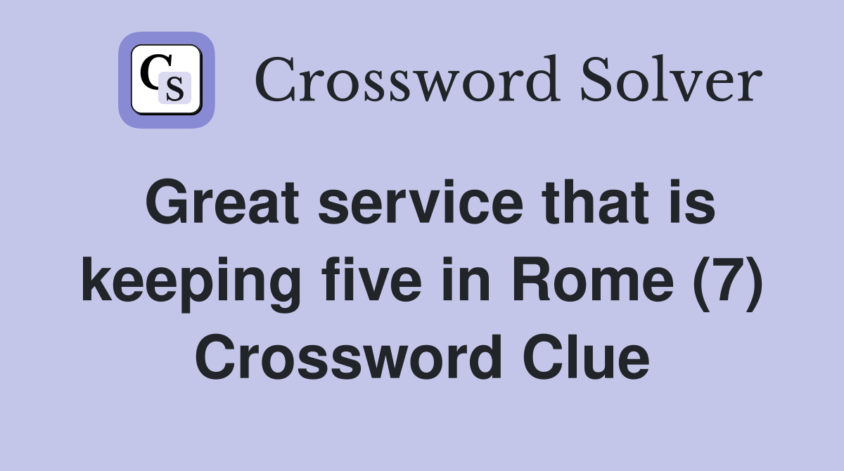 Great service that is keeping five in Rome (7) Crossword Clue Answers