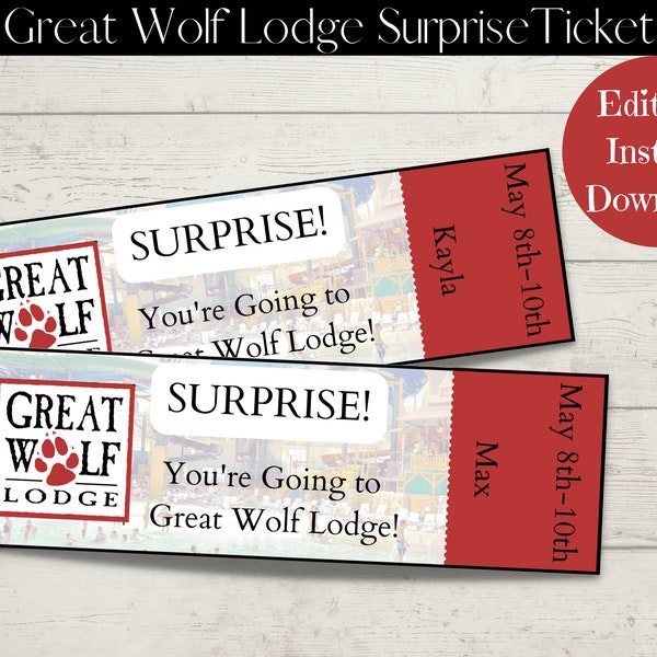 Editable Surprise Great Wolf Lodge Ticket Canva Editable Etsy
