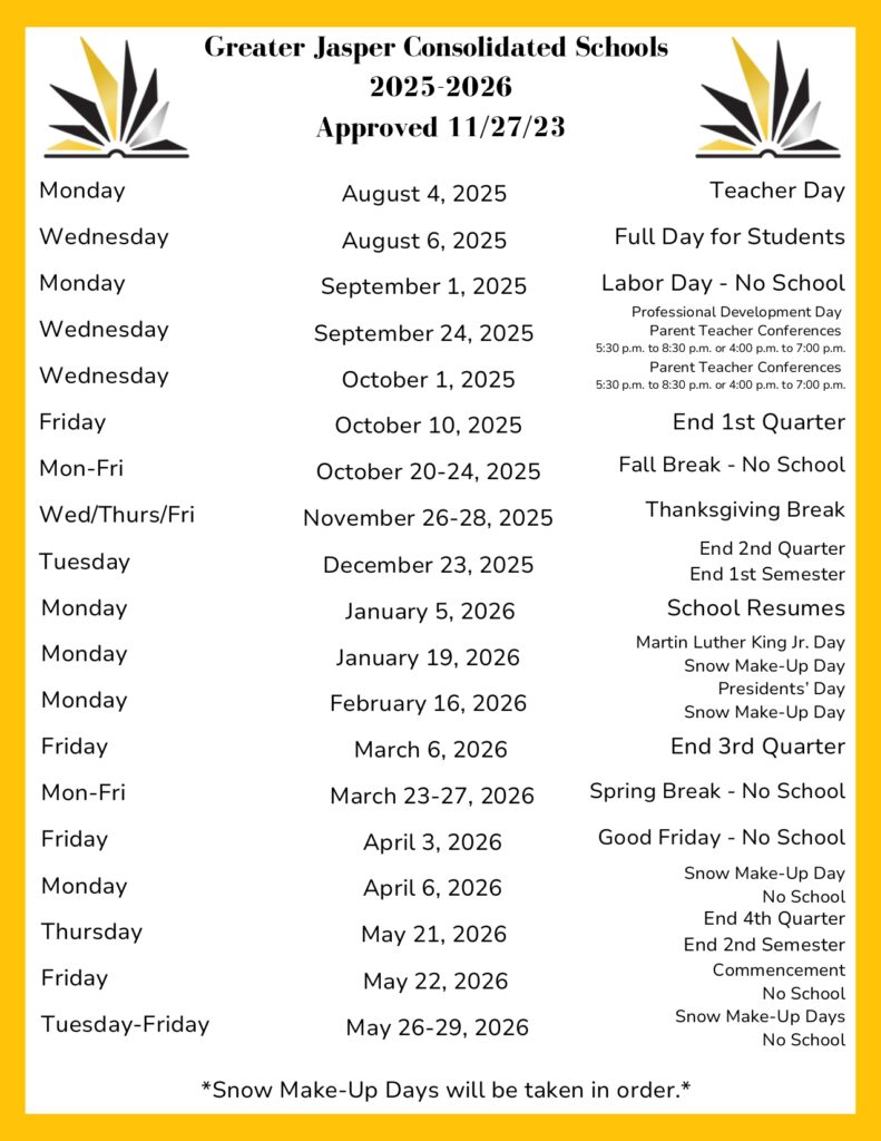 Greater Jasper Schools Calendar