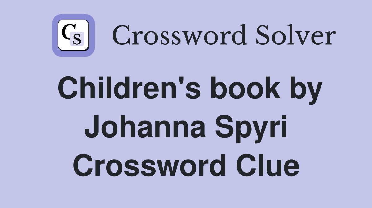 Children #39 s book by Johanna Spyri Crossword Clue Answers Crossword