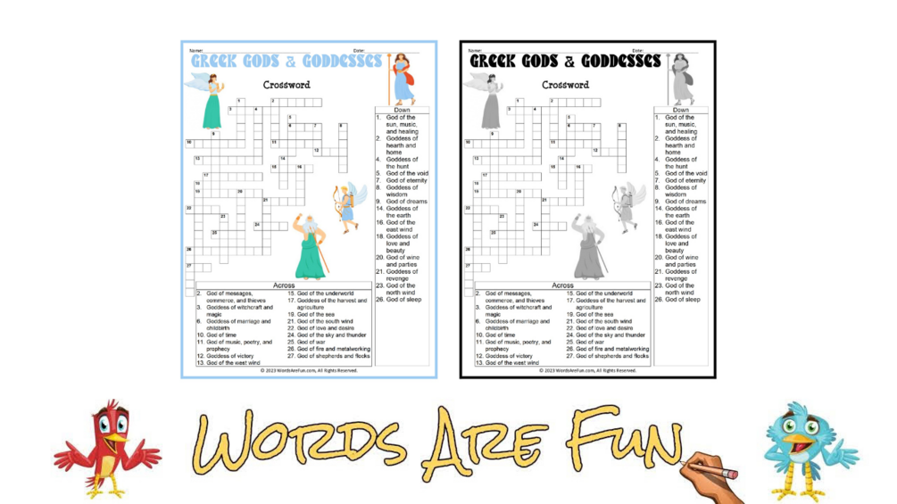 GREEK GODS GODDESSES Crossword Puzzle Handout Fun Activity by Words