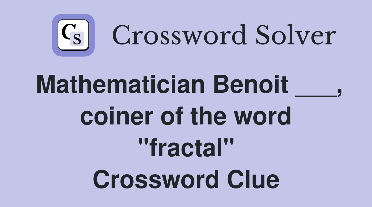 Mathematician Benoit coiner of the word quot fractal quot Crossword Clue