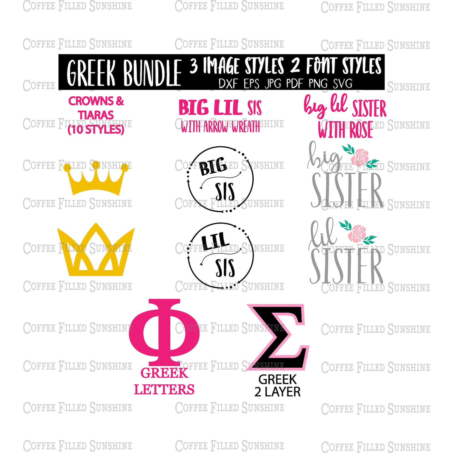 GREEK LETTERS Bundle Greek Sorority SVG Font Big Little Recruitment