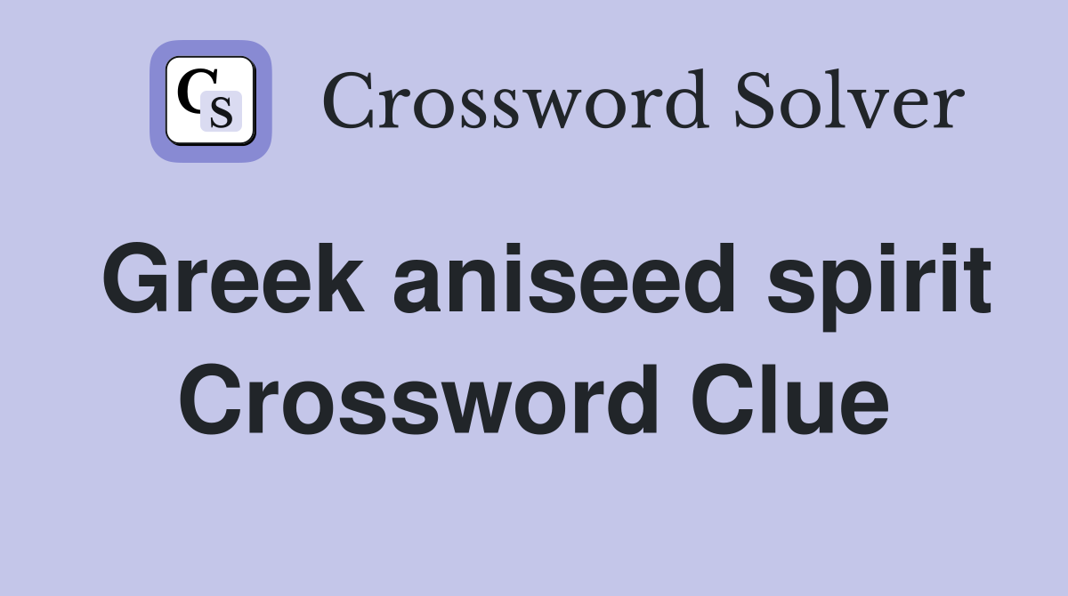 Greek aniseed spirit Crossword Clue Answers Crossword Solver