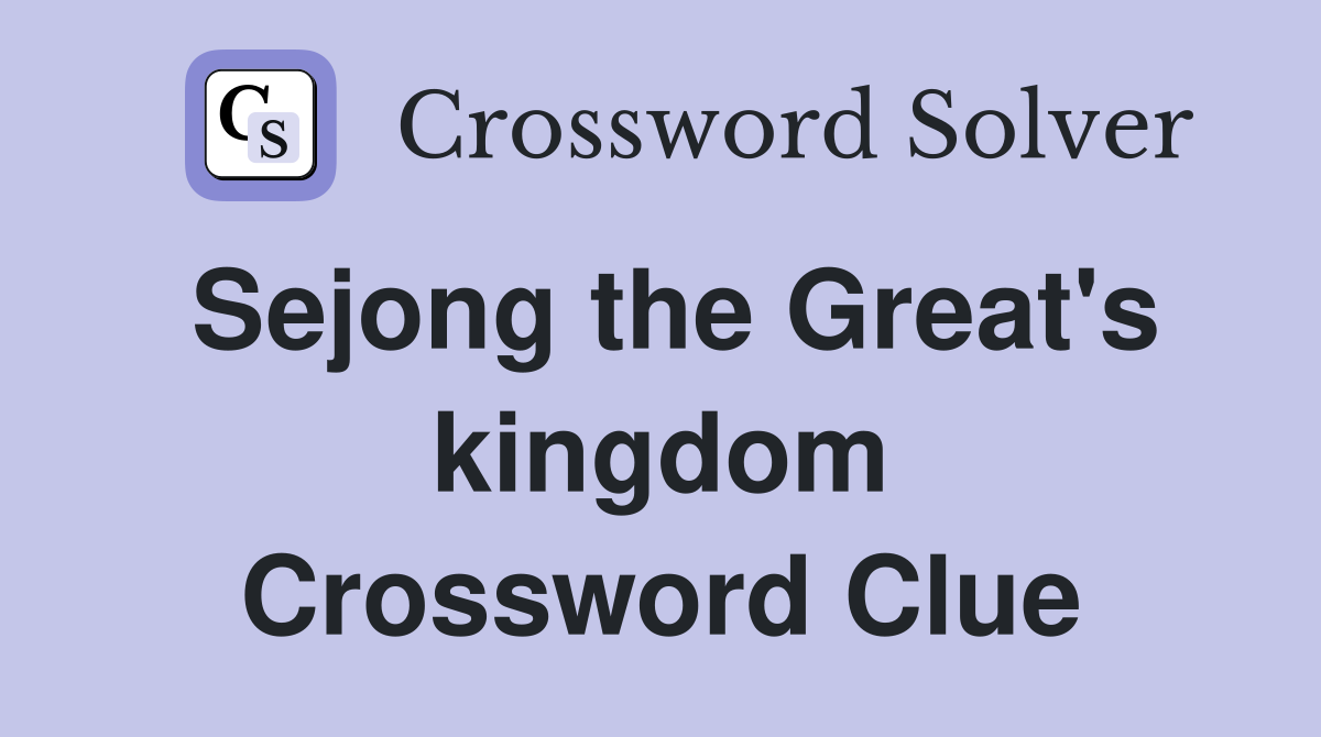 Sejong the Great #39 s kingdom Crossword Clue Answers Crossword Solver