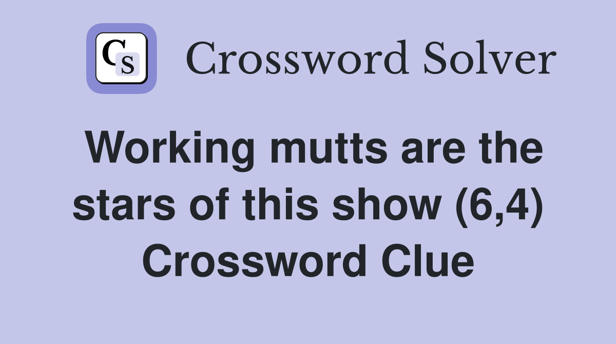Working mutts are the stars of this show (6 4) Crossword Clue Answers