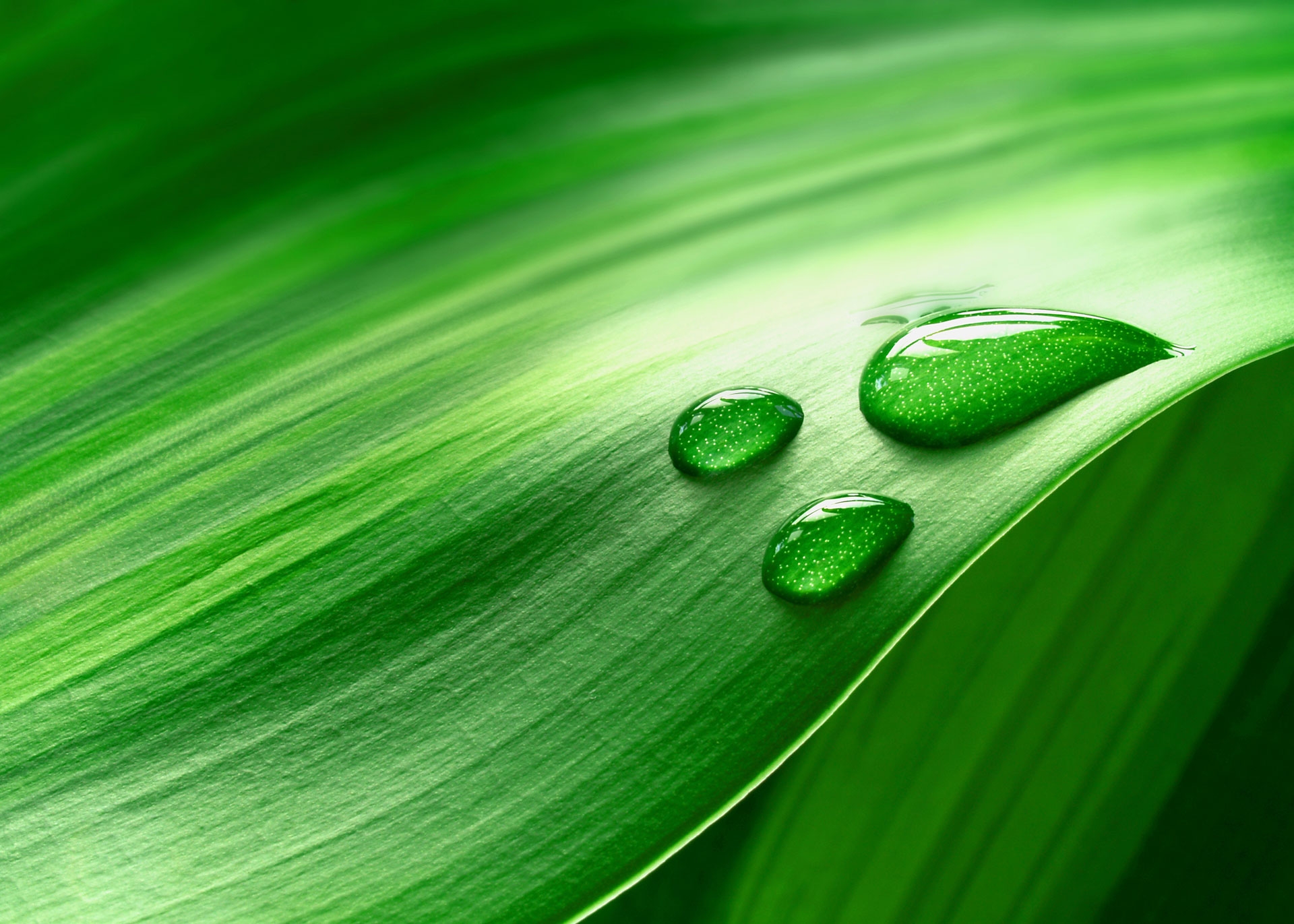 Perfect water drops on a green leaf HD wallpaper