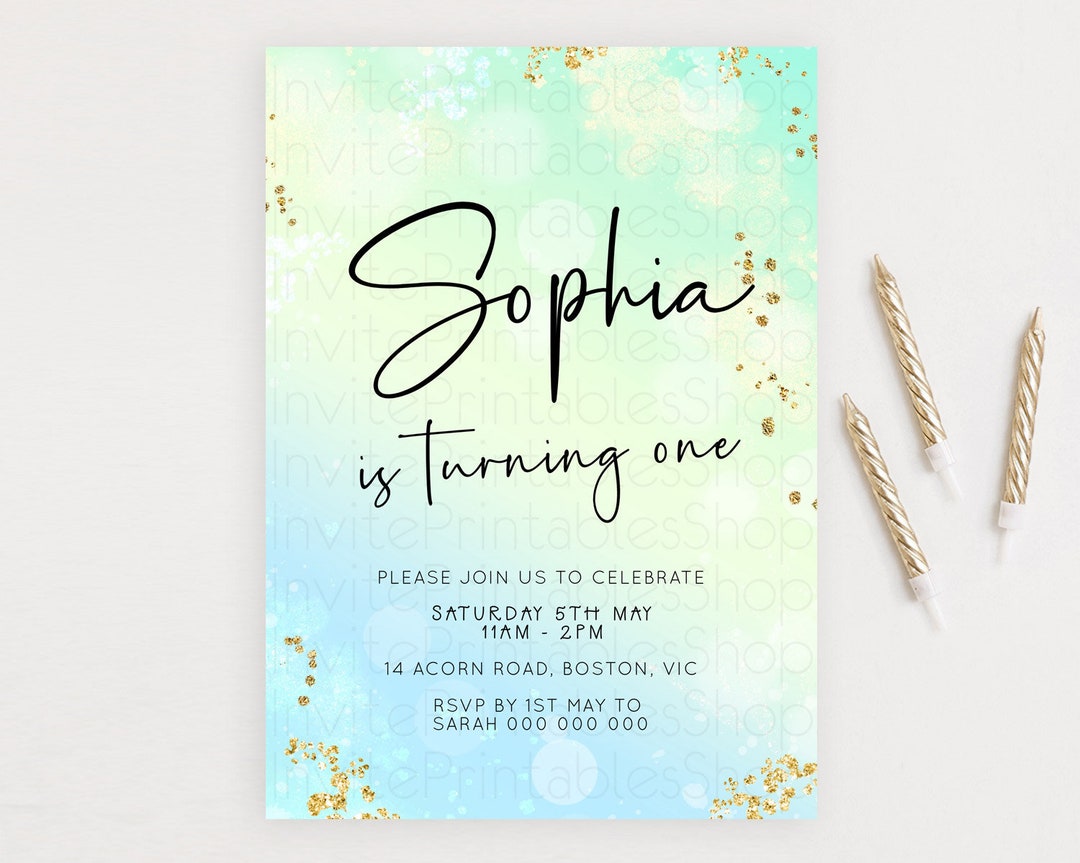 Green Birthday Invitation Green Watercolor Invitation Pastel Green