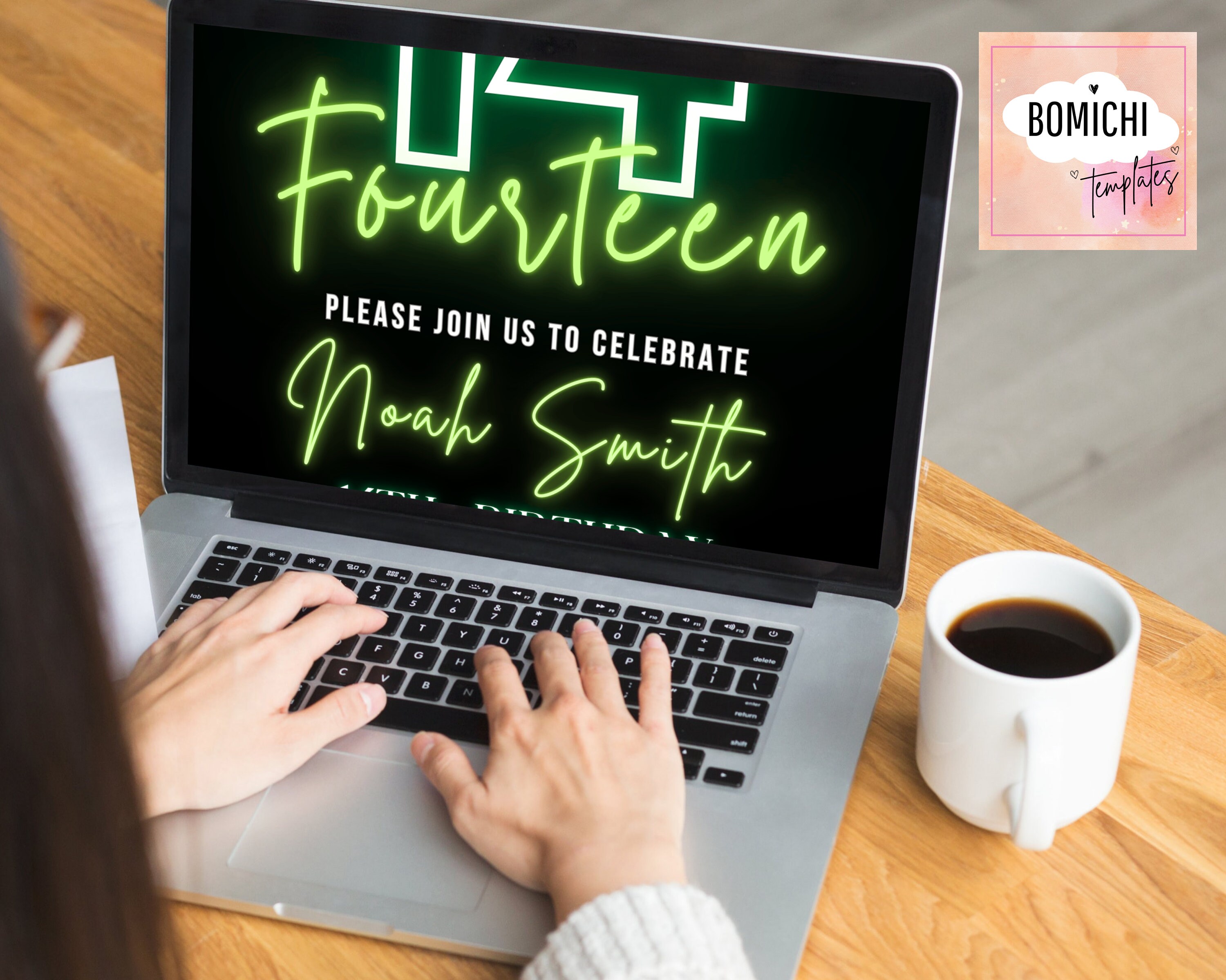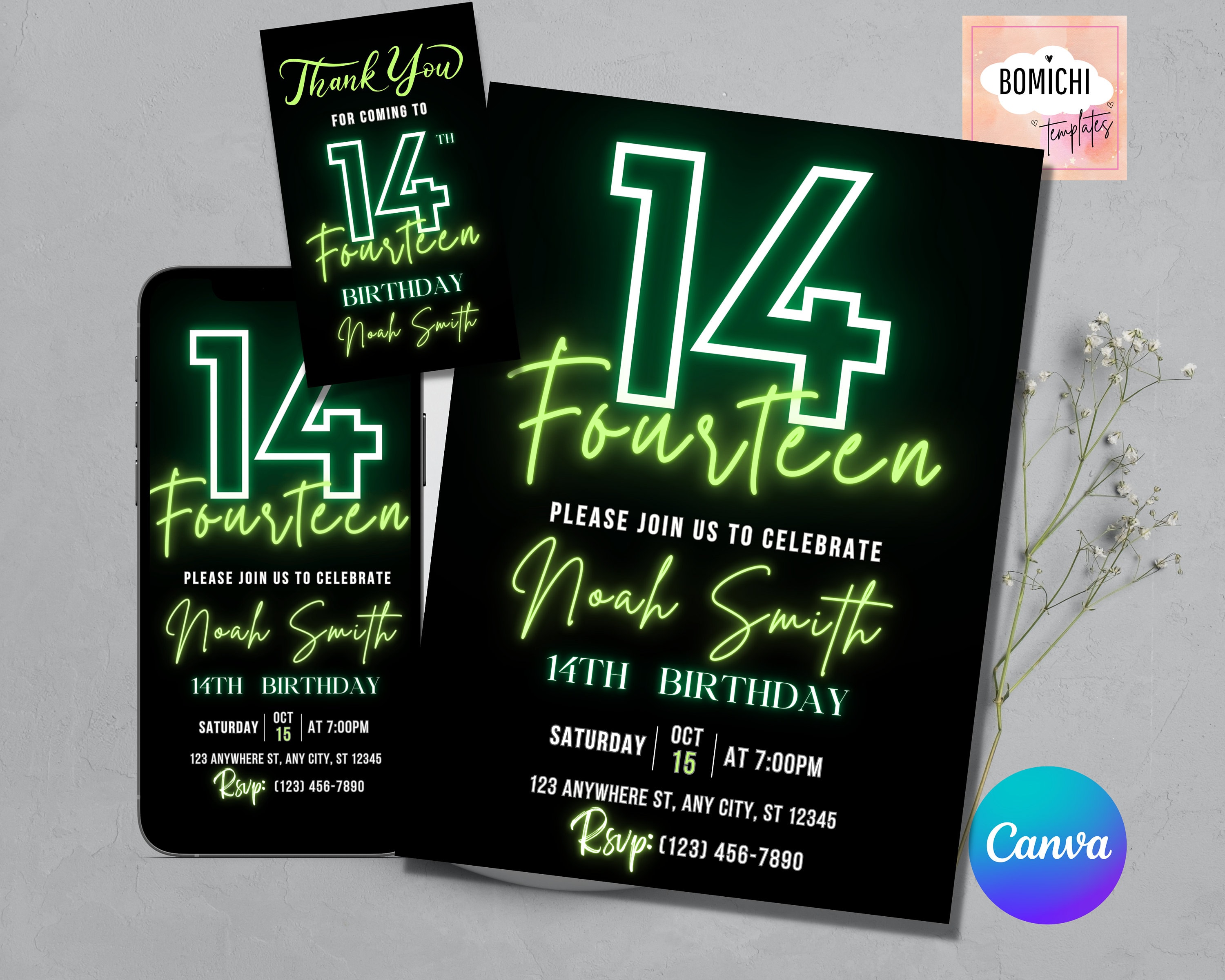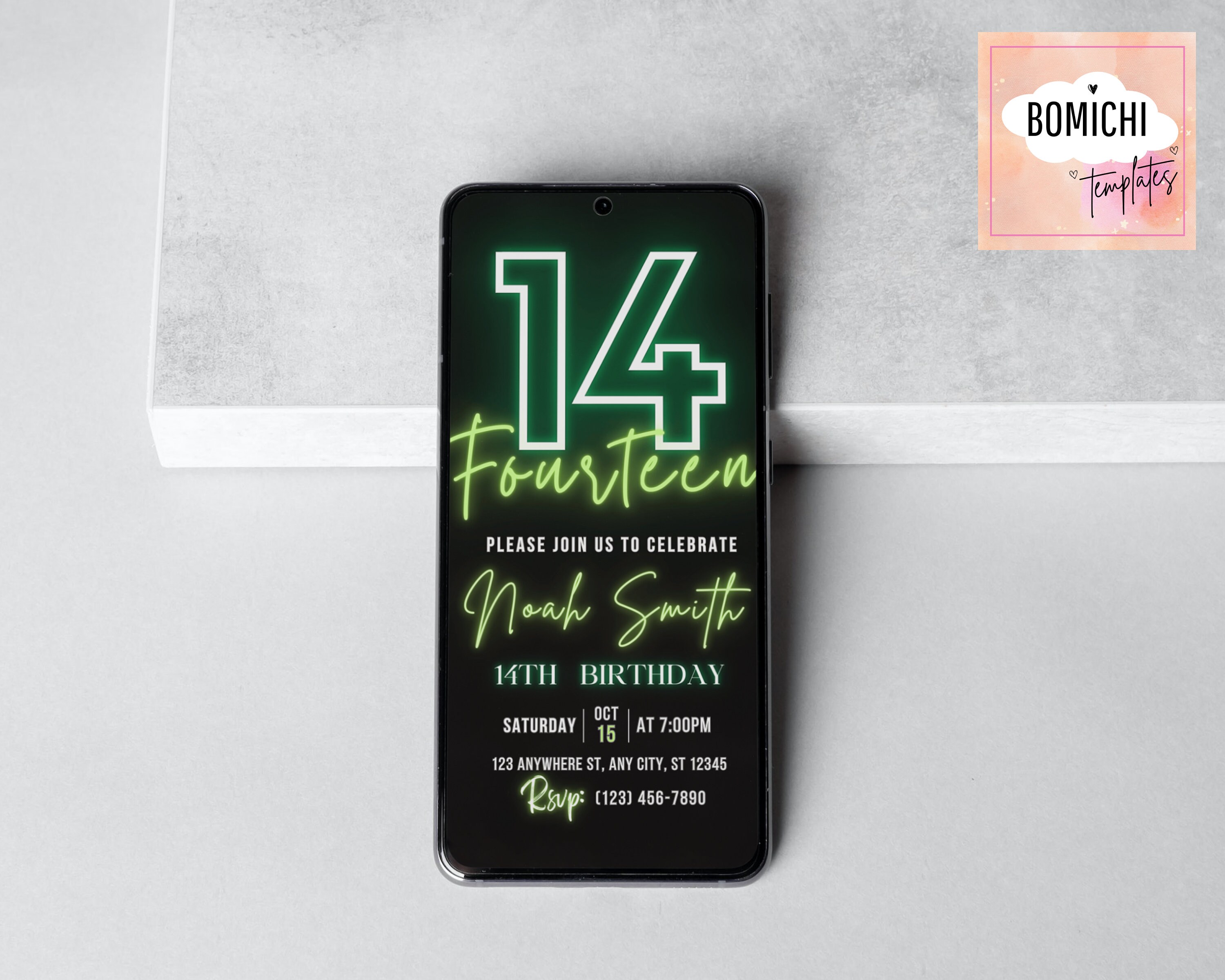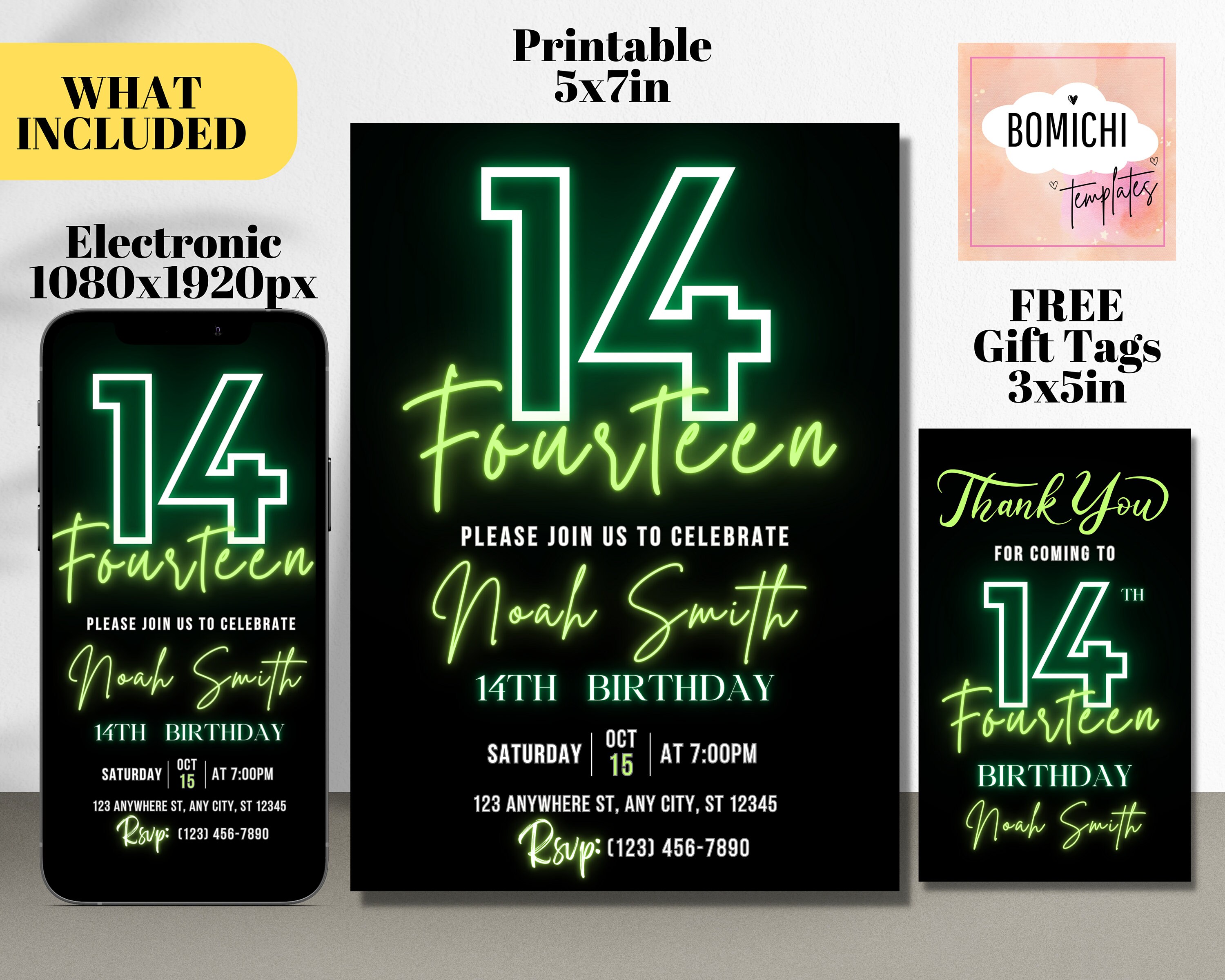 EDITABLE Neon Birthday Invitation Green Birthday Invitation 14th