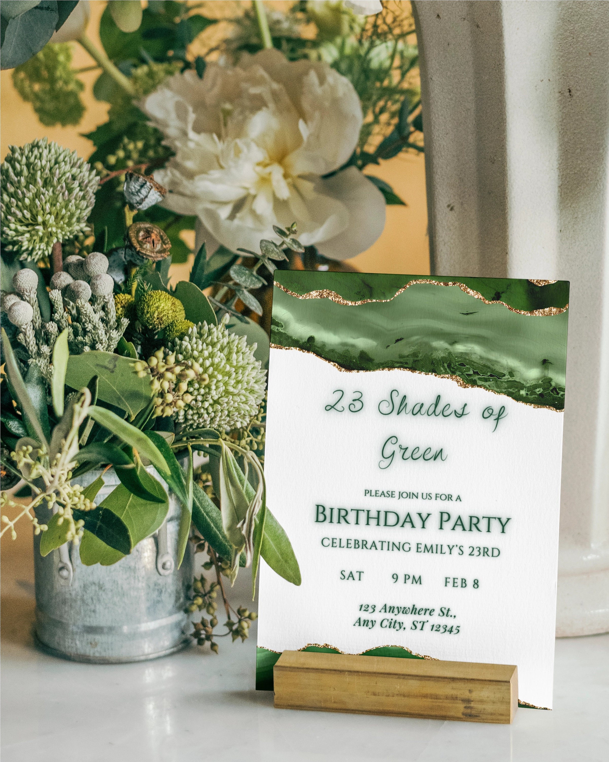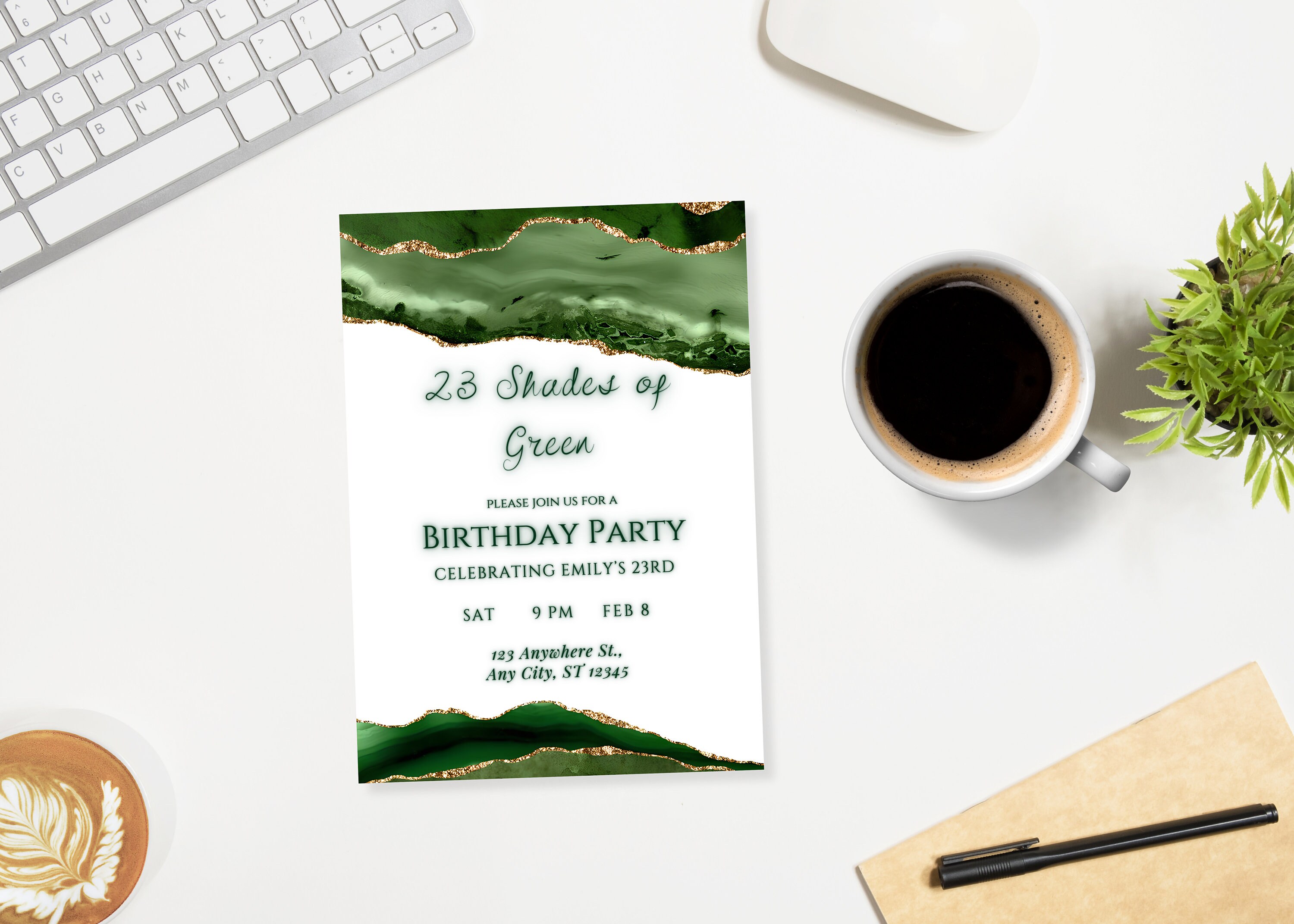 Editable Green and White Invitation Green and Gold Birthday Dinner