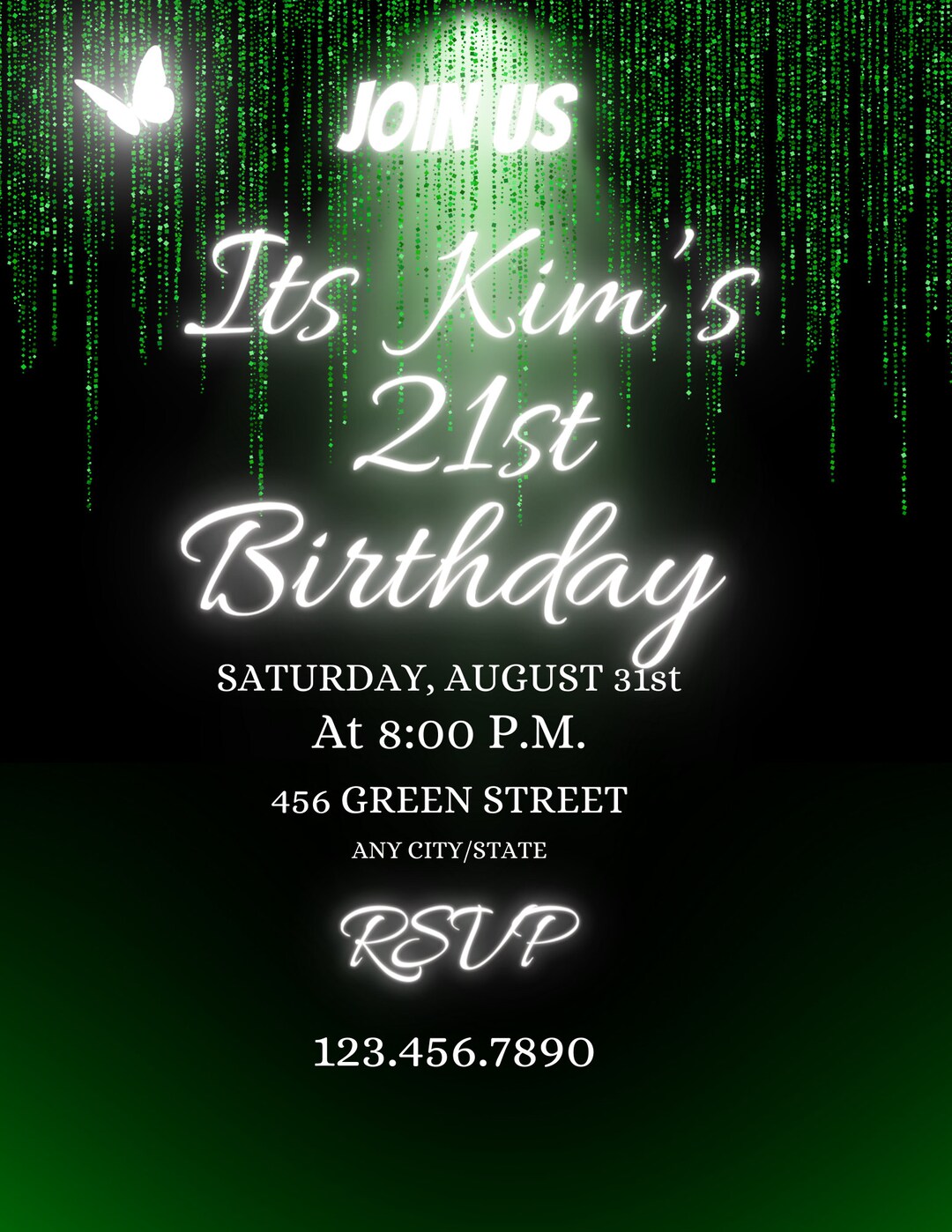 Green Themed Birthday Invitation Green and Black Birthday Card Etsy
