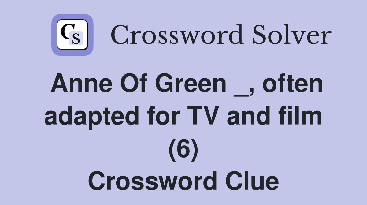 Anne Of Green often adapted for TV and film (6) Crossword Clue