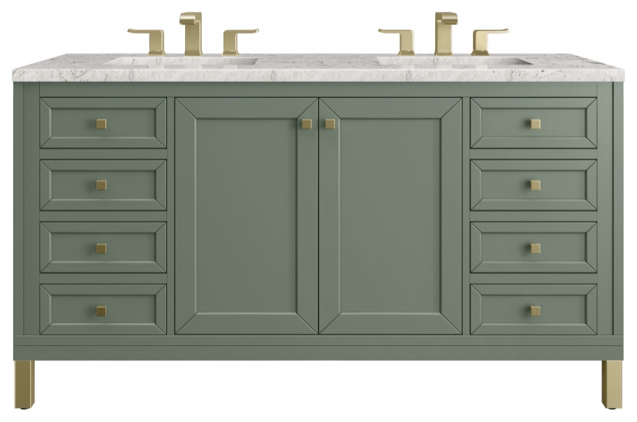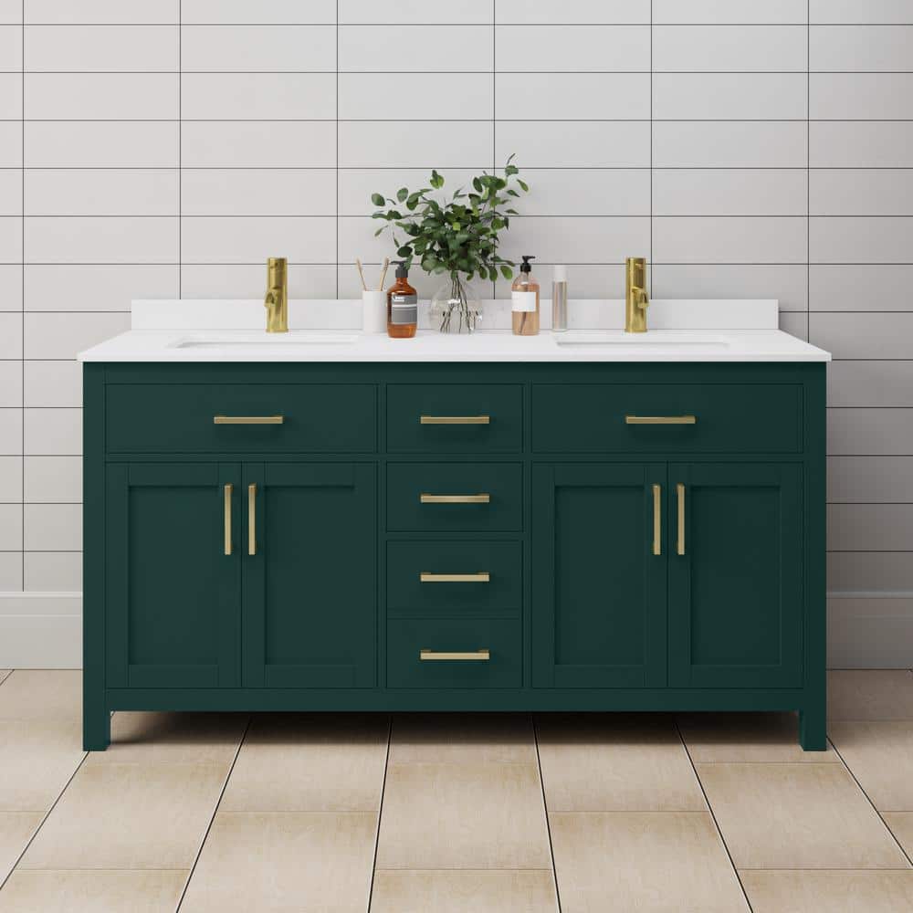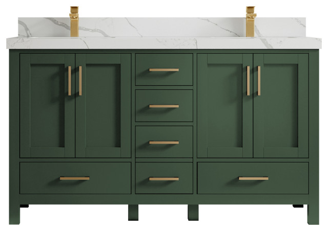 60 Inch Modern Farmhouse Green Double Sink Bathroom Vanity Quartz