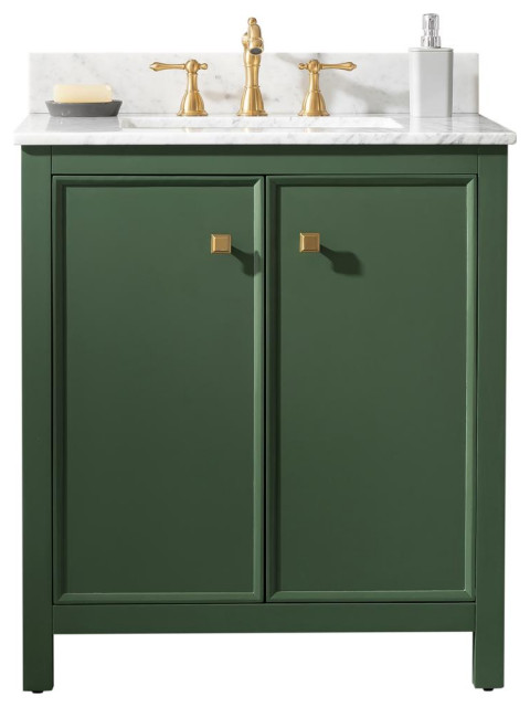 Bella 36 quot Bathroom Vanity with Sage Green Cabinet and Carrara Marble