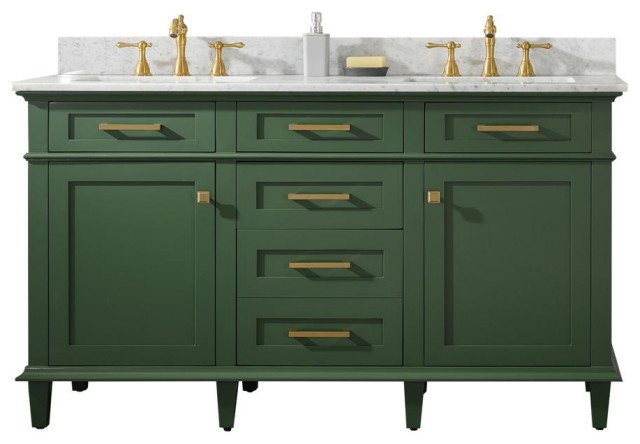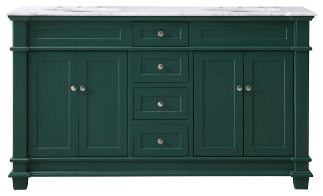 60 quot Vogue Green Finish Double Sink Vanity Cabinet With Carrara White