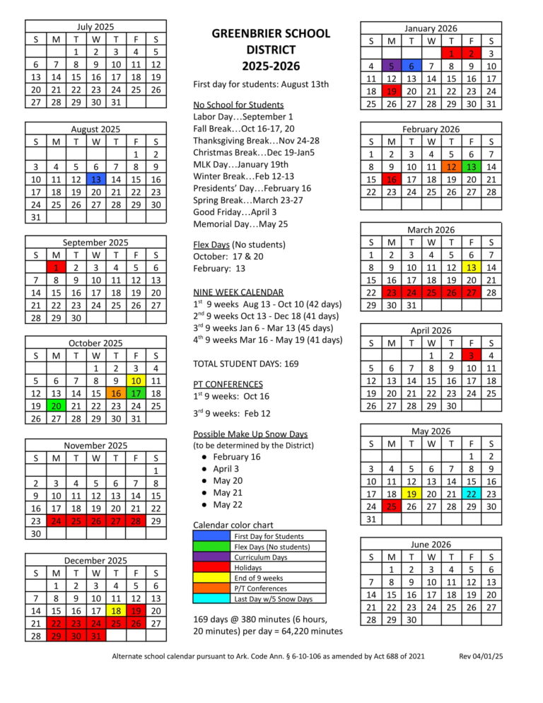 Greenbrier Public Schools AR Calendar 25 26 Revised pdf EduCounty