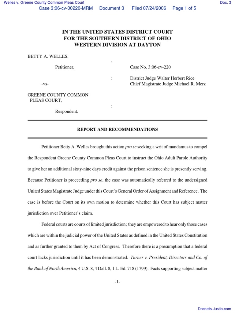 Welles v Greene County Common Pleas Court Document No 3 PDF