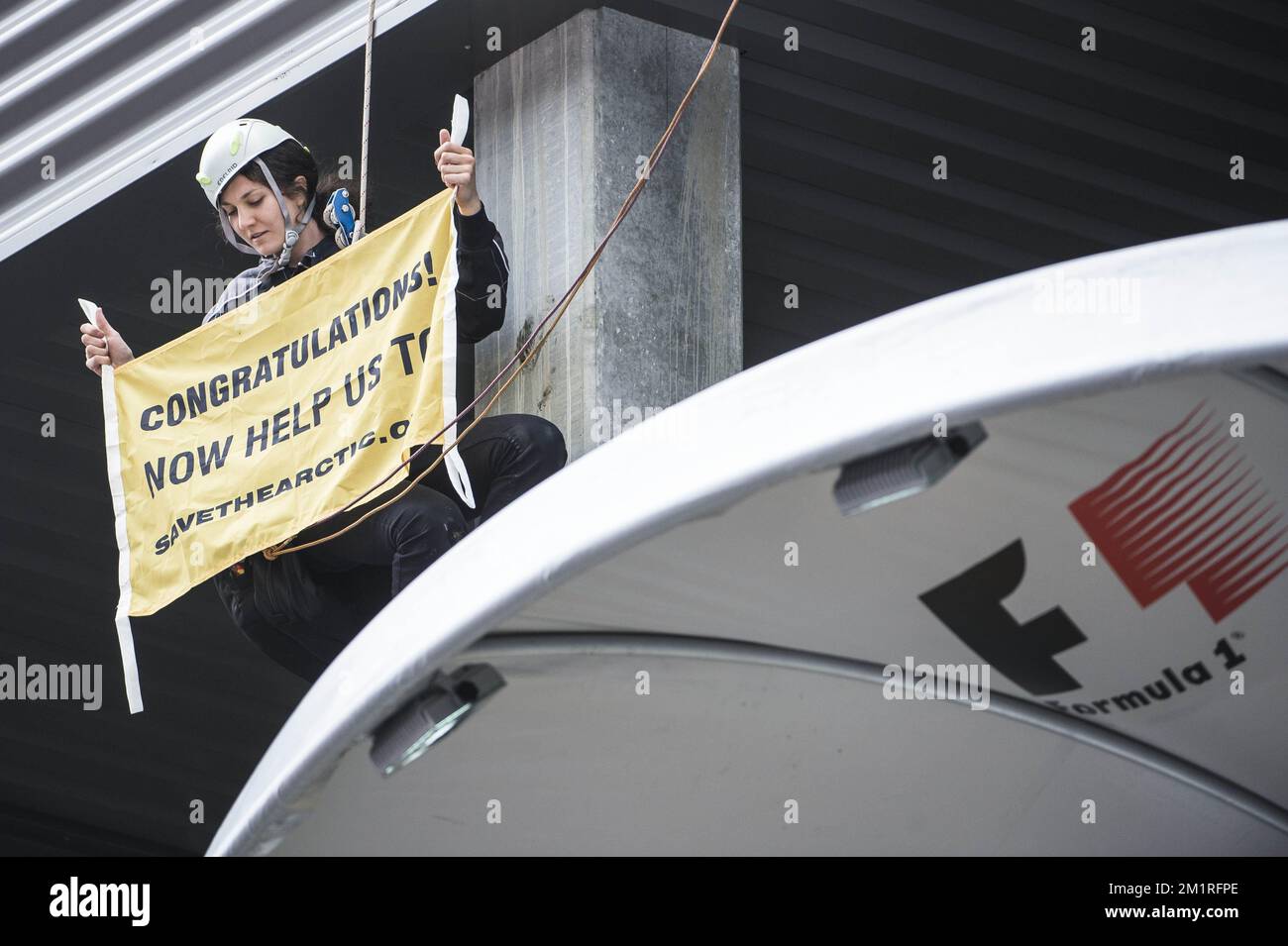 Illustration picture shows an action of Greenpeace reading