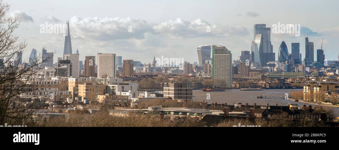 London skyline seen from Royal Observatory Greenwich Dome of St Paul