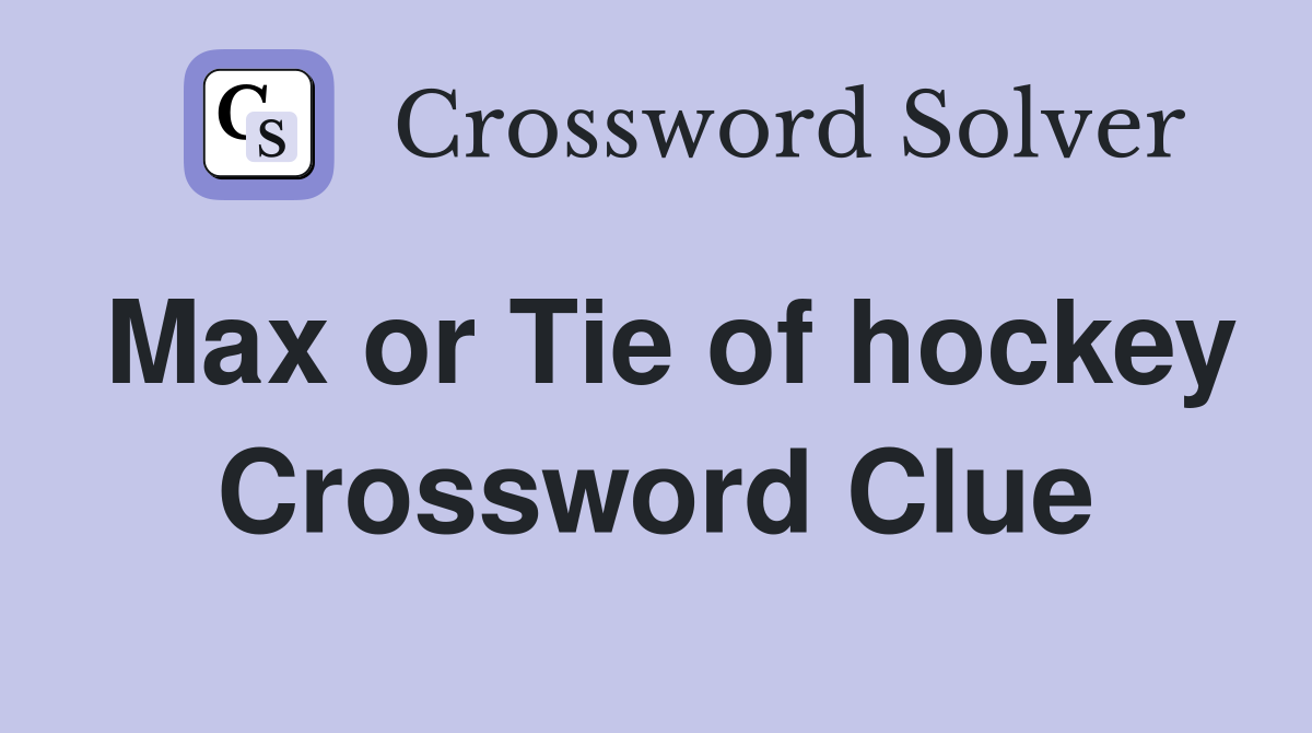 Max or Tie of hockey Crossword Clue Answers Crossword Solver
