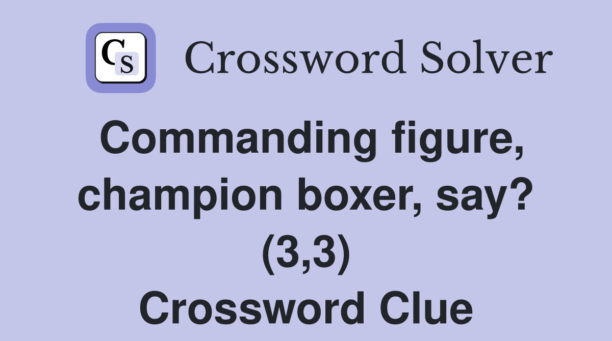 Commanding figure champion boxer say? (3 3) Crossword Clue Answers