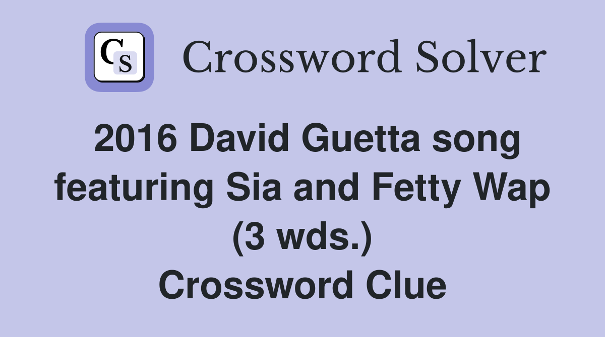 2016 David Guetta song featuring Sia and Fetty Wap (3 wds ) Crossword