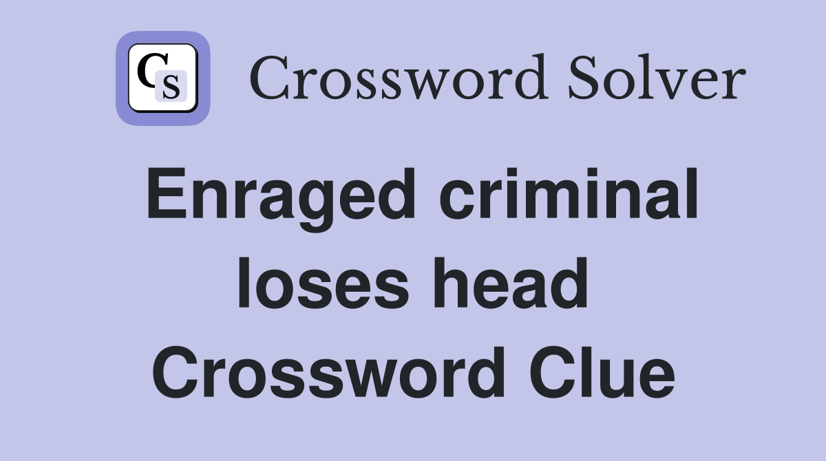 Enraged criminal loses head Crossword Clue Answers Crossword Solver