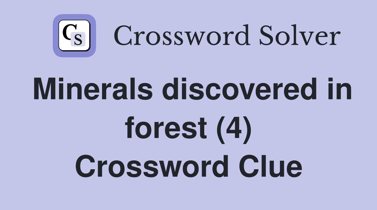 Minerals discovered in forest (4) Crossword Clue Answers Crossword