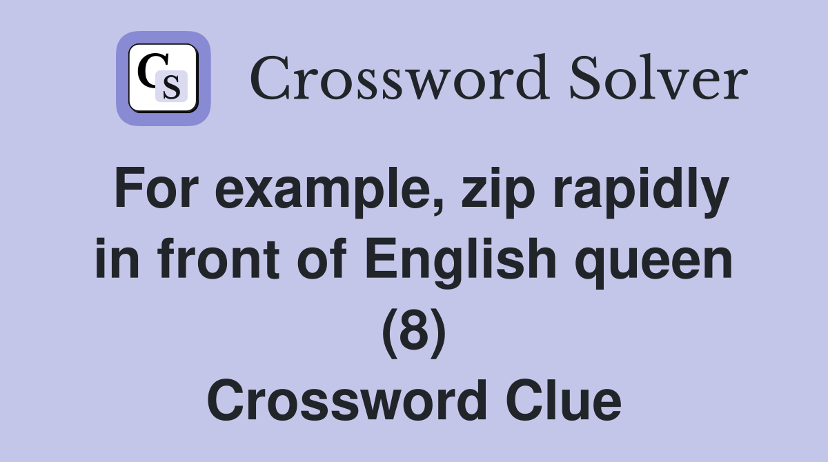 For example zip rapidly in front of English queen (8) Crossword Clue