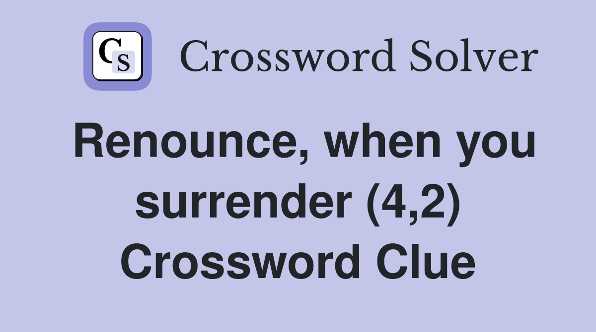 Renounce when you surrender (4 2) Crossword Clue Answers Crossword