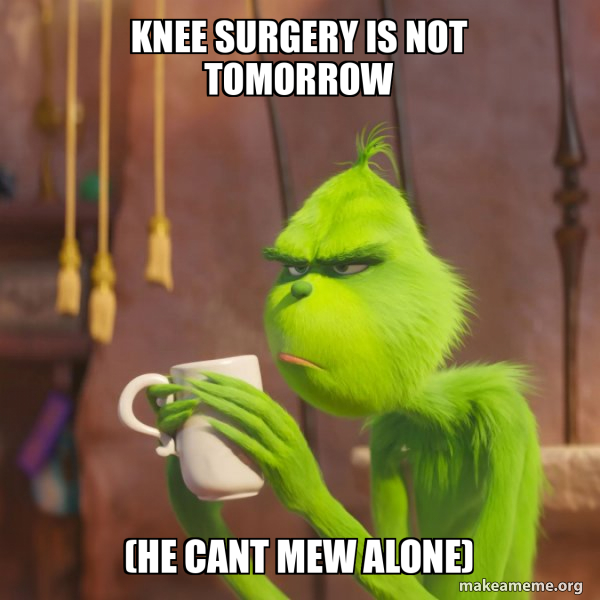 knee surgery is not tomorrow (he cant mew alone) Grinch Meme Generator