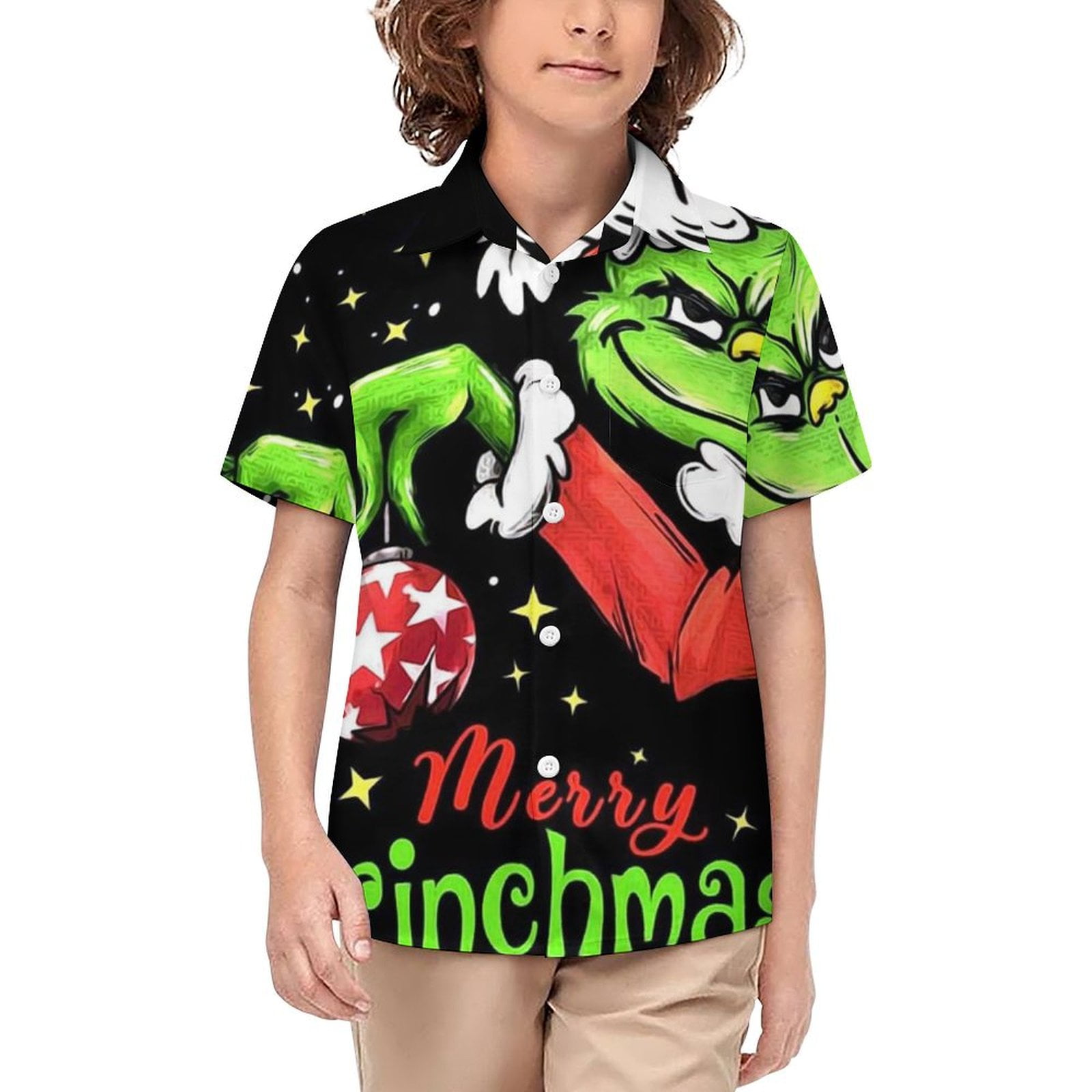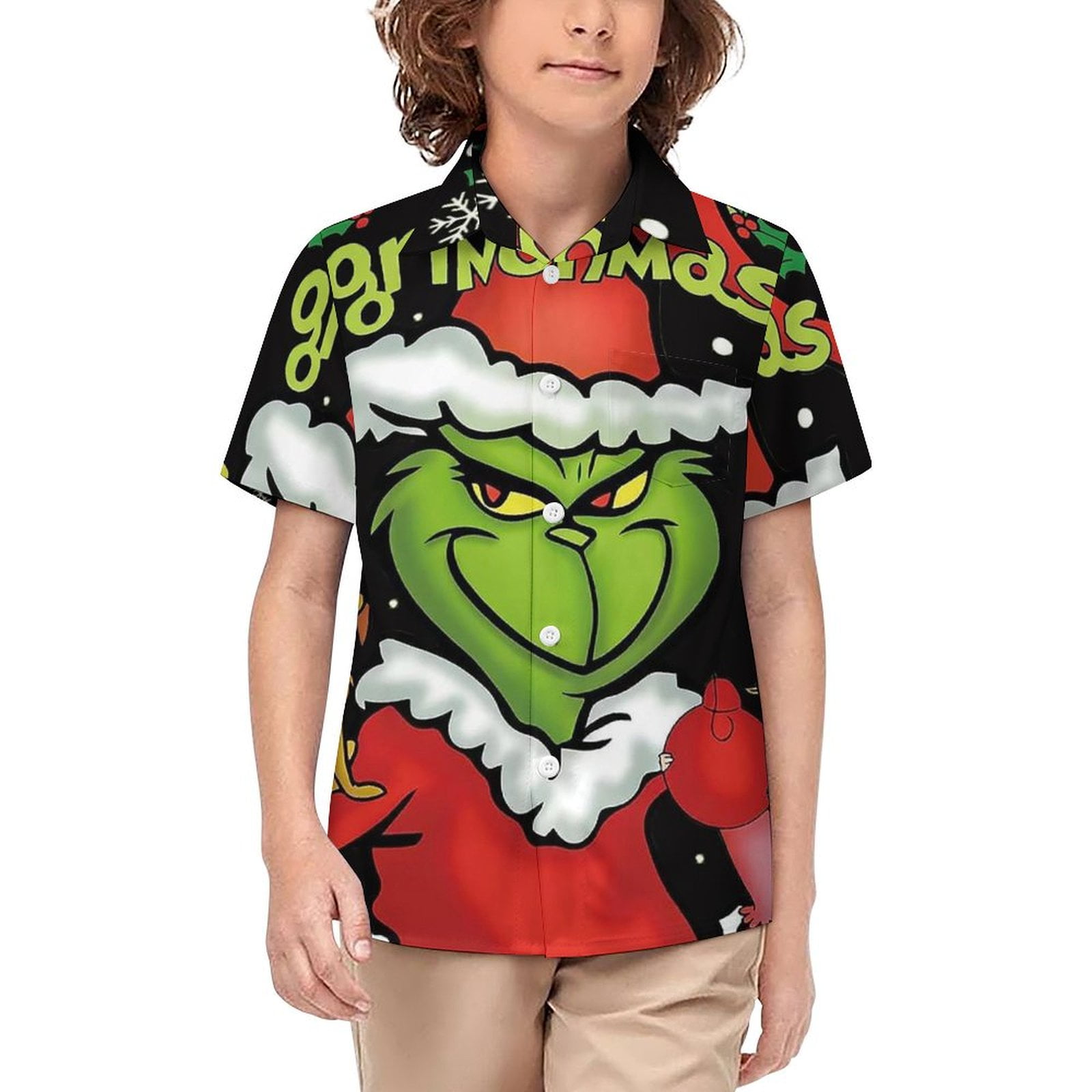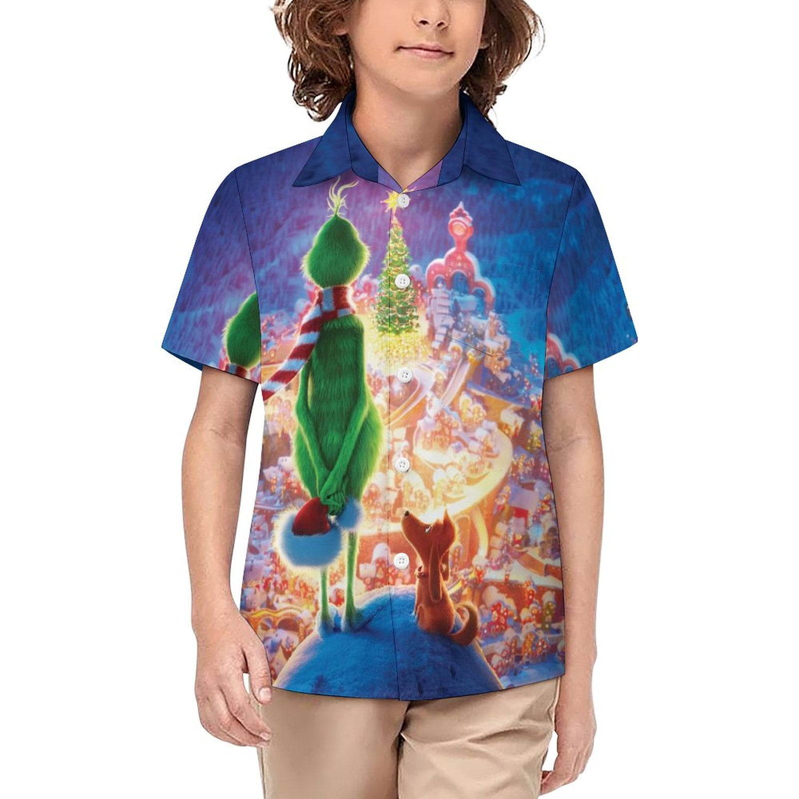 Grinch Boys Hawaiian Shirts Button Down Short Sleeve Tropical Print