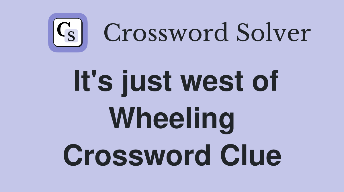 It #39 s just west of Wheeling Crossword Clue Answers Crossword Solver