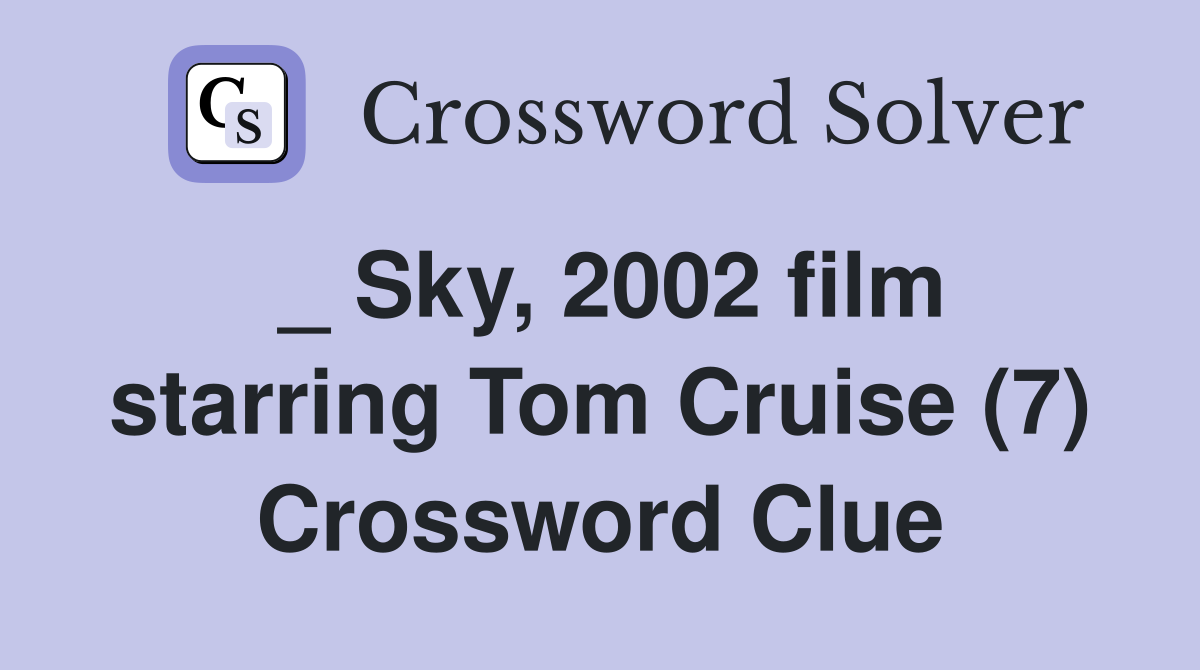 Sky 2002 film starring Tom Cruise (7) Crossword Clue Answers
