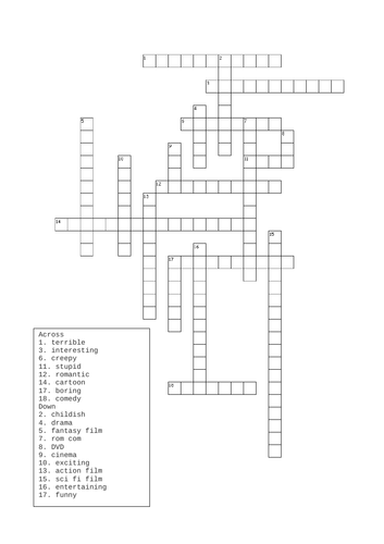Film genre and opinions crossword (Stimmt2) Teaching Resources