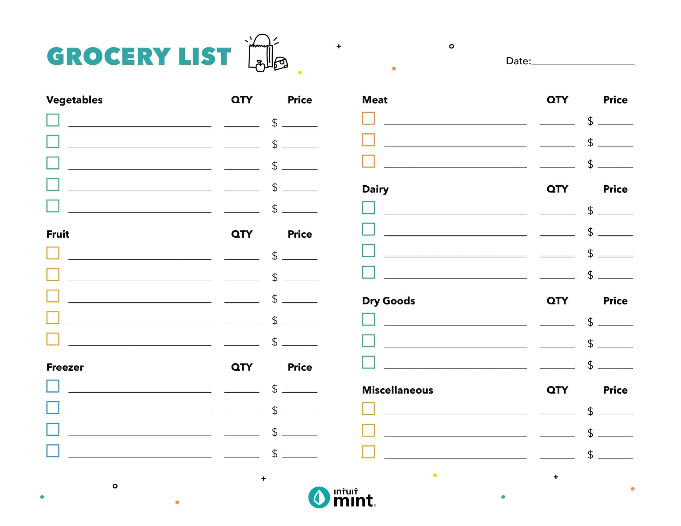 Grocery List Excel Templates Excel templates Excel spreadsheets