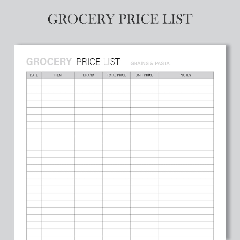 Printable Grocery Price List: Budget Tracker (US LETTER A4) Etsy