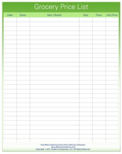 Free free printable grocery price list Download Free free printable