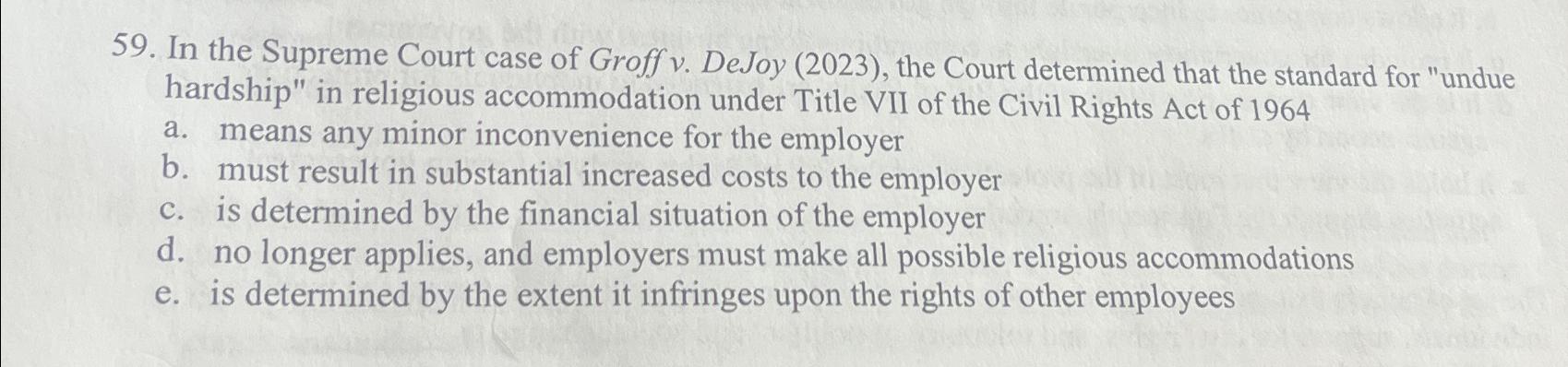 Solved In the Supreme Court case of Groff v DeJoy (2023) Chegg com