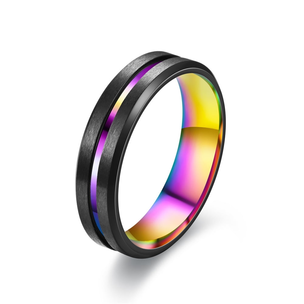 1JIE Personalized Simple Stainless Steel Colorful Groove Ring for Men