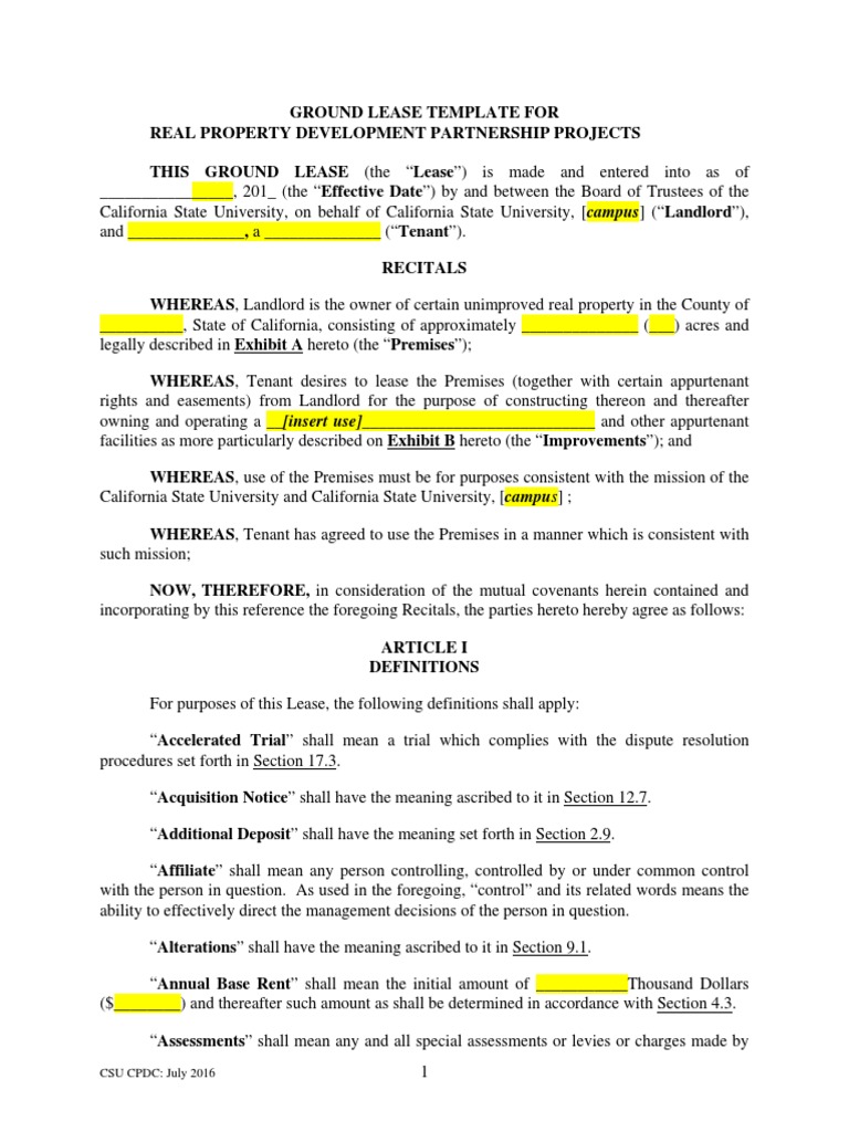 CSU Ground Lease Template PDF Lease Leasehold Estate