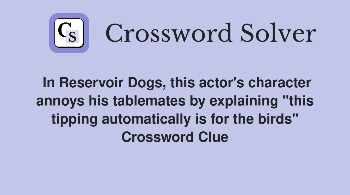 In Reservoir Dogs this actor #39 s character annoys his tablemates by