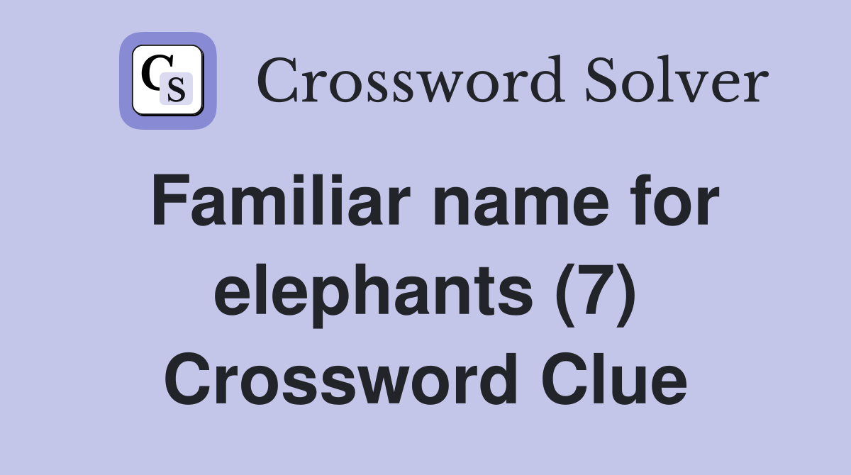 Familiar name for elephants (7) Crossword Clue Answers Crossword Solver