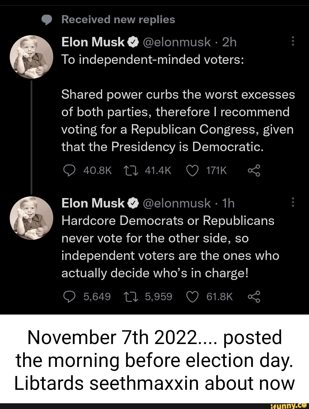 Elon Musk Tells Independent Minded Voters : I Recommend Voting for a