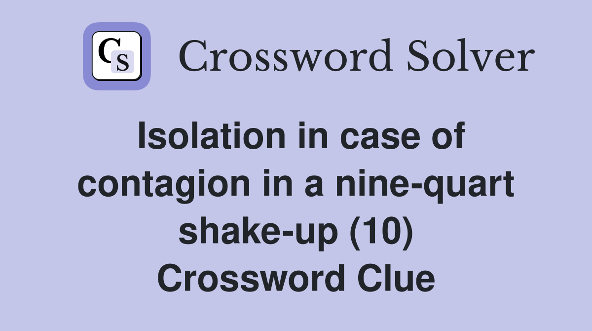 Isolation in case of contagion in a nine quart shake up (10